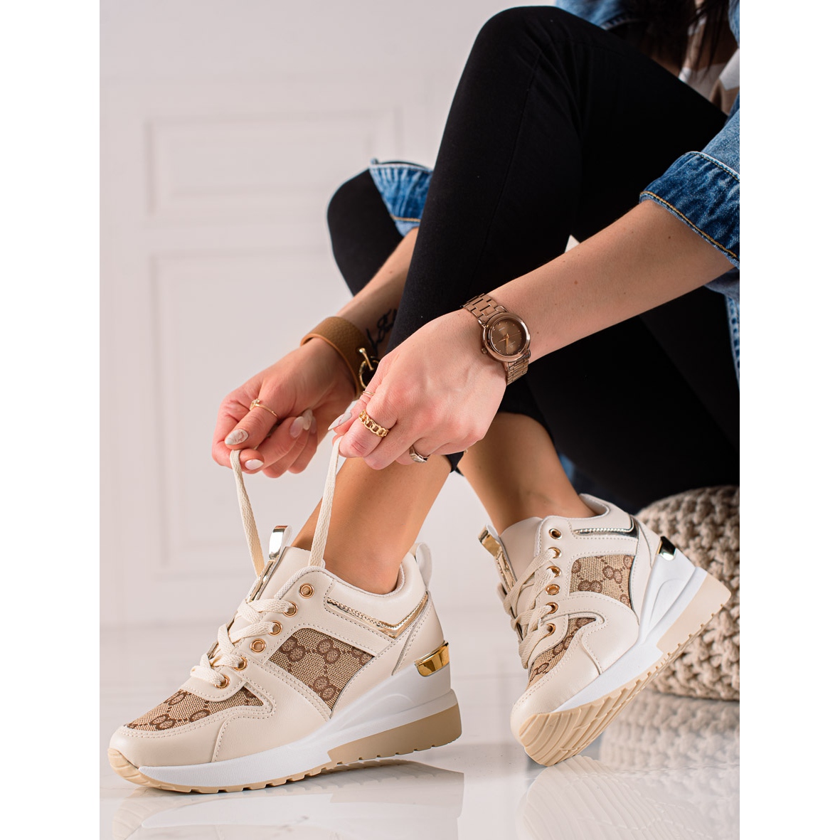 Detaljer: TRENDI Mode Sneakers På Kil beige brun
