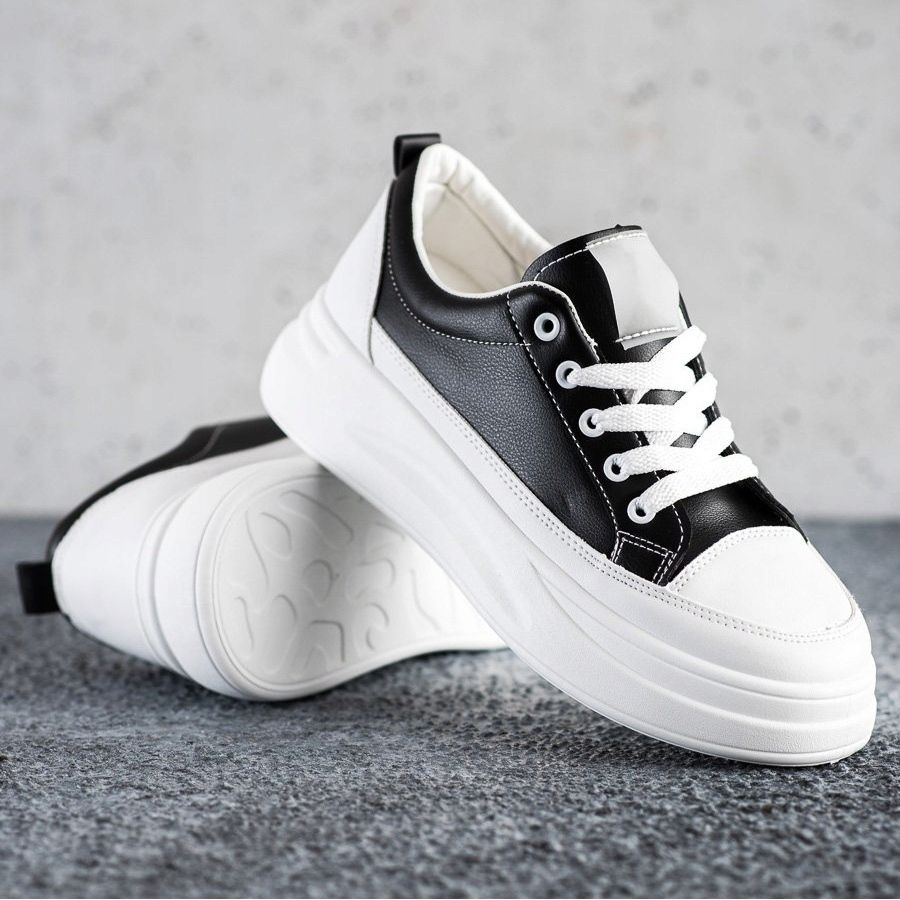Vi presenterar sneakers för modeplattformar från märket SHELOVET - ett idealiskt val för kvinnor som värdesätter moderiktig design och komfort. Dessa snygga svarta sneakers, gjorda av högkvalitativt läderimitation, matchar perfekt aktuella trender och kombinerar sportig stil med elegans.