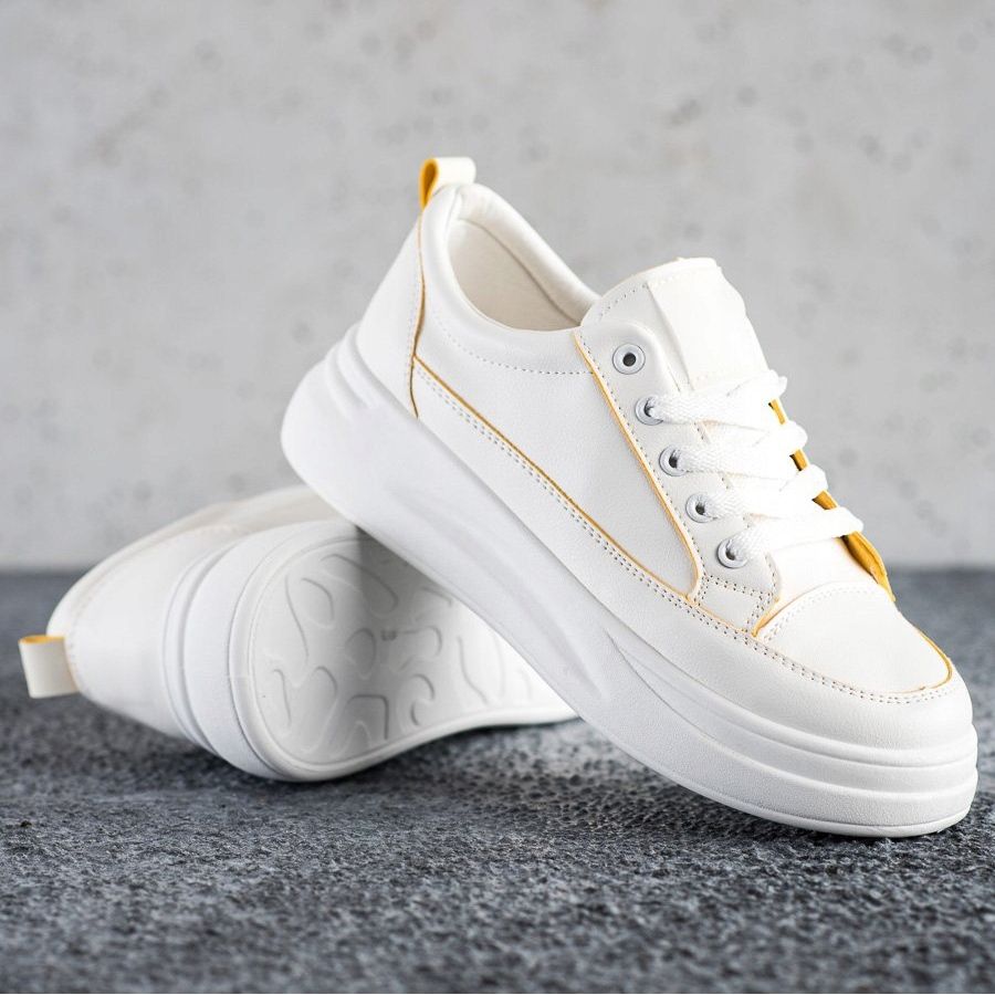 Upptäck komfort och stil med SHELOVET Fashion platform sneakers! Dessa eleganta, vita sneakers är den perfekta kombinationen av sportig avslappnad och mode, som kommer att fungera bra i alla vardagssituationer. Dessa skor är gjorda av högkvalitativt läderimitation och ser inte bara bra ut, utan ger också komfort när de bärs.
