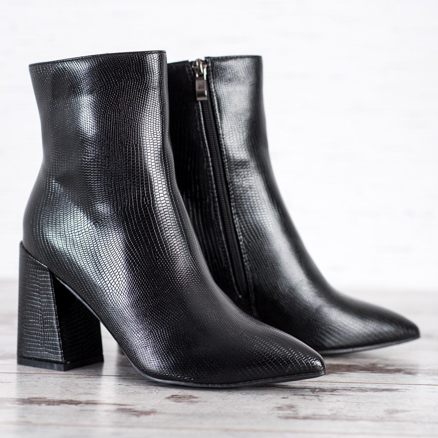 Behaglig invändig isolering säkerställer termisk komfort även under kallare dagar, och den höga, 9 cm blockhälen ger figuren en smal figur och förlänger benen optiskt. Dragkedjan gör den lätt att ta av och på, vilket gör stövlarna extremt praktiska. Den släta, syntetiska sulan och styvade hälen ger stabilitet och komfort, vilket är oerhört viktigt för vardagsbruk.