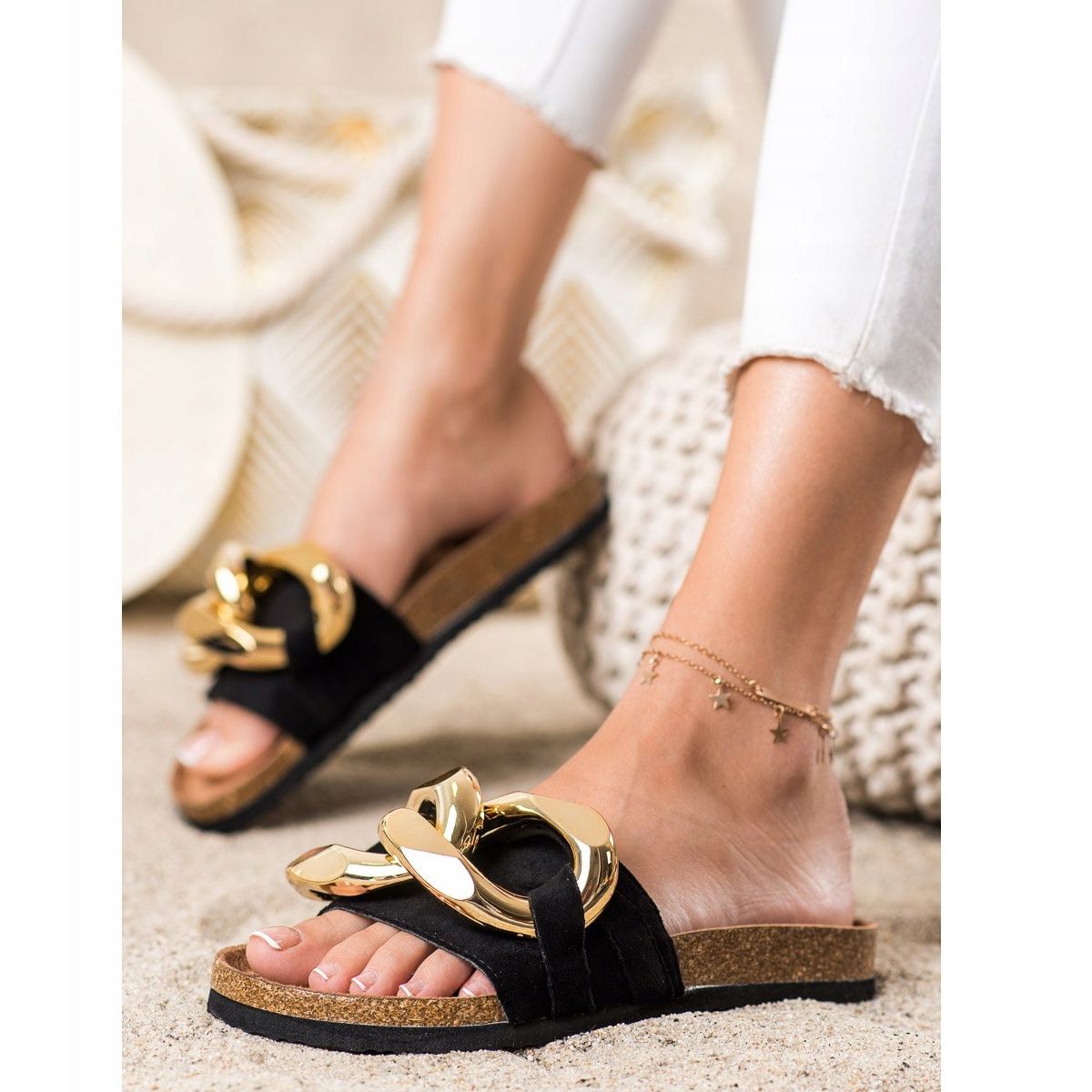Vi presenterar svarta Fashion flip-flops från den välkända tillverkaren Sabatina. Detta är det perfekta valet för kvinnor som värdesätter komfort och en moderiktig look varje dag. Tack vare slip-on-designen och den öppna hälen är det extremt enkelt och bekvämt att ta av och på dessa flipflops.