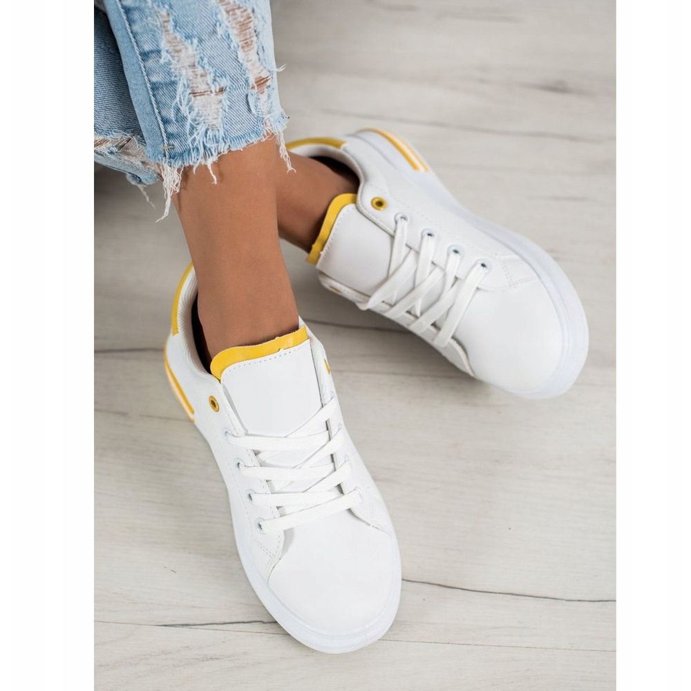 Upptäck elegans och komfort i varje steg med vita och gula SHELOVET sneakers. Dessa fashionabla damskor med en 3,5-centimeters plattform i kombination med gula dekorativa ränder på baksidan skapar en unik och stilren look som kommer att vara perfekt för både vardagliga och mer avslappnade stilar.