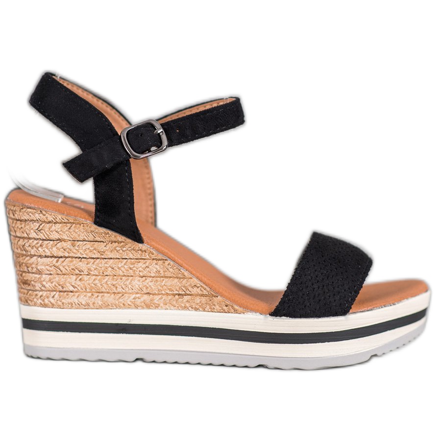 Upptäck komfort och elegans med fashionabla Weide-kilar, perfekta för vår- och sommardagar! Dessa damsandaler i en fantastisk svart färg är en kombination av stil och komfort som perfekt kommer att komplettera alla avslappnade och modestilar.