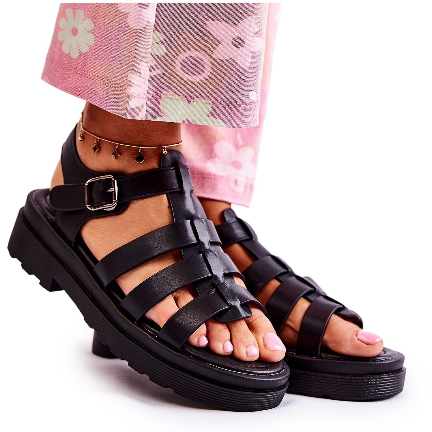 Dessa sandaler kännetecknas av en platt klack och en plattform, vilket gör dem extremt stabila, vilket garanterar komfort att bära hela dagen. En mjuk innersula i ekoläder säkerställer fotens komfort och eliminerar obehag i samband med långvarig användning.