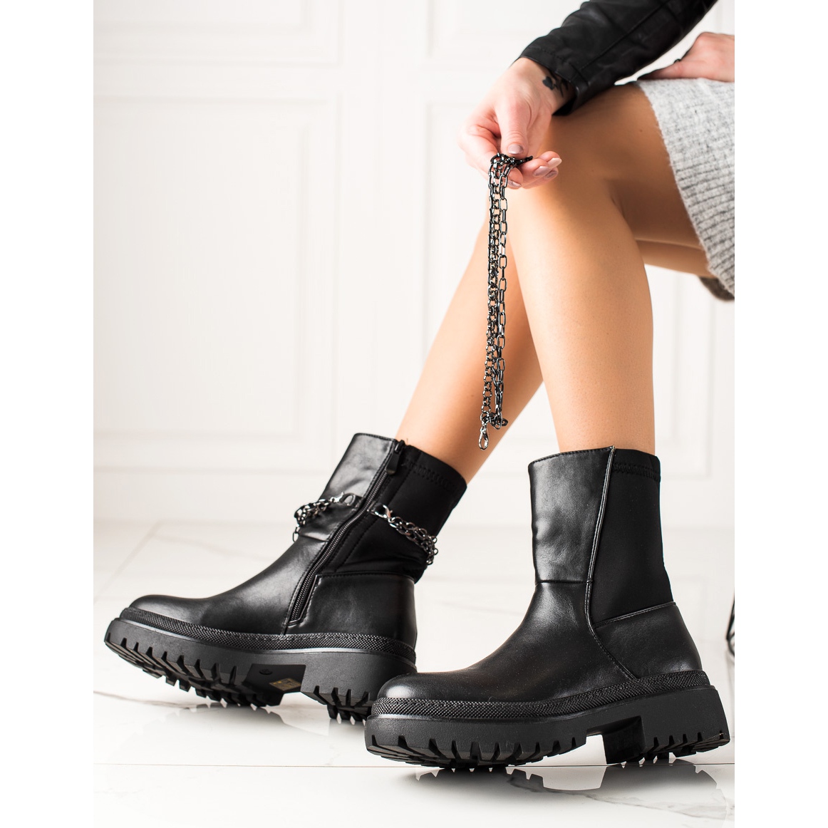 Upptäck den extraordinära stilen och komforten som erbjuds av modehandväskor med en kedja från tillverkaren Sixth Sense. Dessa unika stövlar är det perfekta valet för höst-vintersäsongen, som kombinerar en avslappnad och rockig atmosfär i ett. Deras eleganta svarta färg gör att de matchar många outfits, både till vardags och till kvällsutflykter.