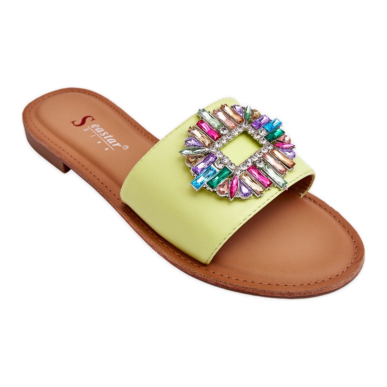 Detaljer: Modetofflor för kvinnor med grön Halsey-dekoration