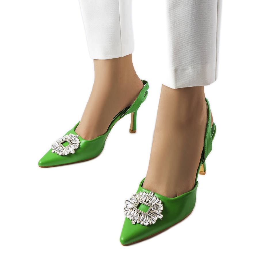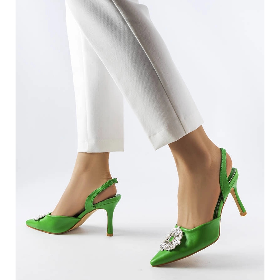 Gröna höga klackar med moïse -zirkoner - elegans i en intensiv utgåva. Den klassiska, spetsiga näsan och den smala höga hälen betonar figuren, och de känsliga strassen på den övre tilläggsglansen - perfekt för kvällsutflykter, bröllop och speciella tillfällen i sommarsäsongsmiljön.
