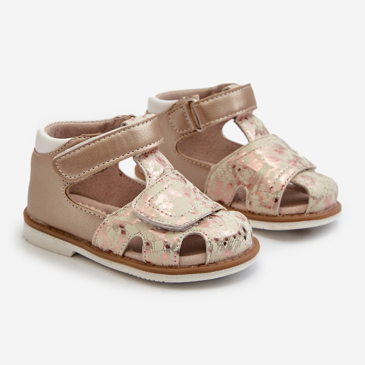 Upptäck de perfekta sandalerna för din lilla prinsessa - barnmönstrade sandaler med kardborrband i en vacker gyllene färg! Dessa snygga skor glädjer sig inte bara med sin design, utan ger också enastående komfort och stöd för glada fötter av de yngsta.