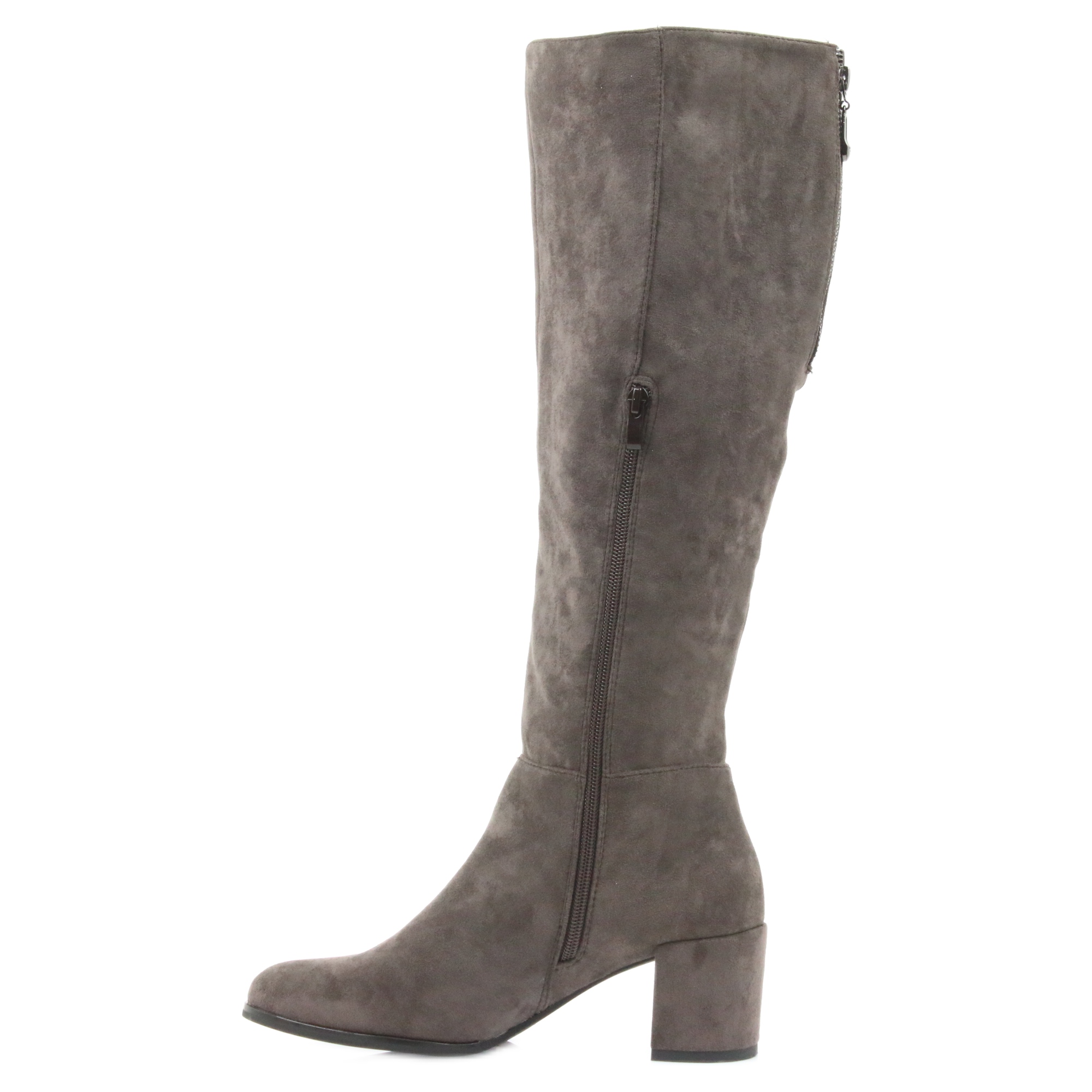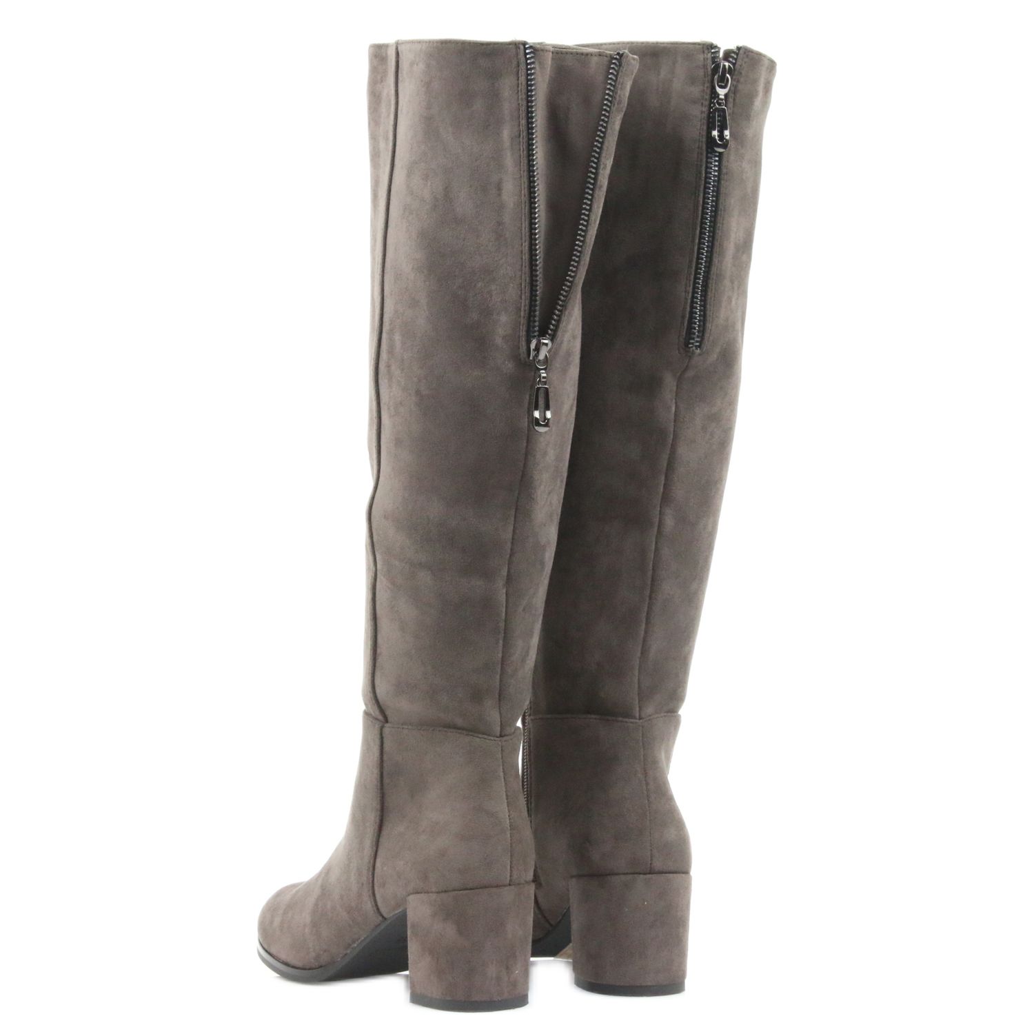 Den höga ovandelen som sträcker sig upp till knäet och det klassiska snittet gör dessa skor perfekta för en mängd olika stilar, från formell till avslappnad. Den låga hälen, 6 cm hög, säkerställer stabilitet och komfort när den bärs under långa timmar. En ytterligare fördel är den praktiska dragkedjan i ovandelens övre del, som gör det enkelt att ta av och på skorna och även ökar deras bredd.