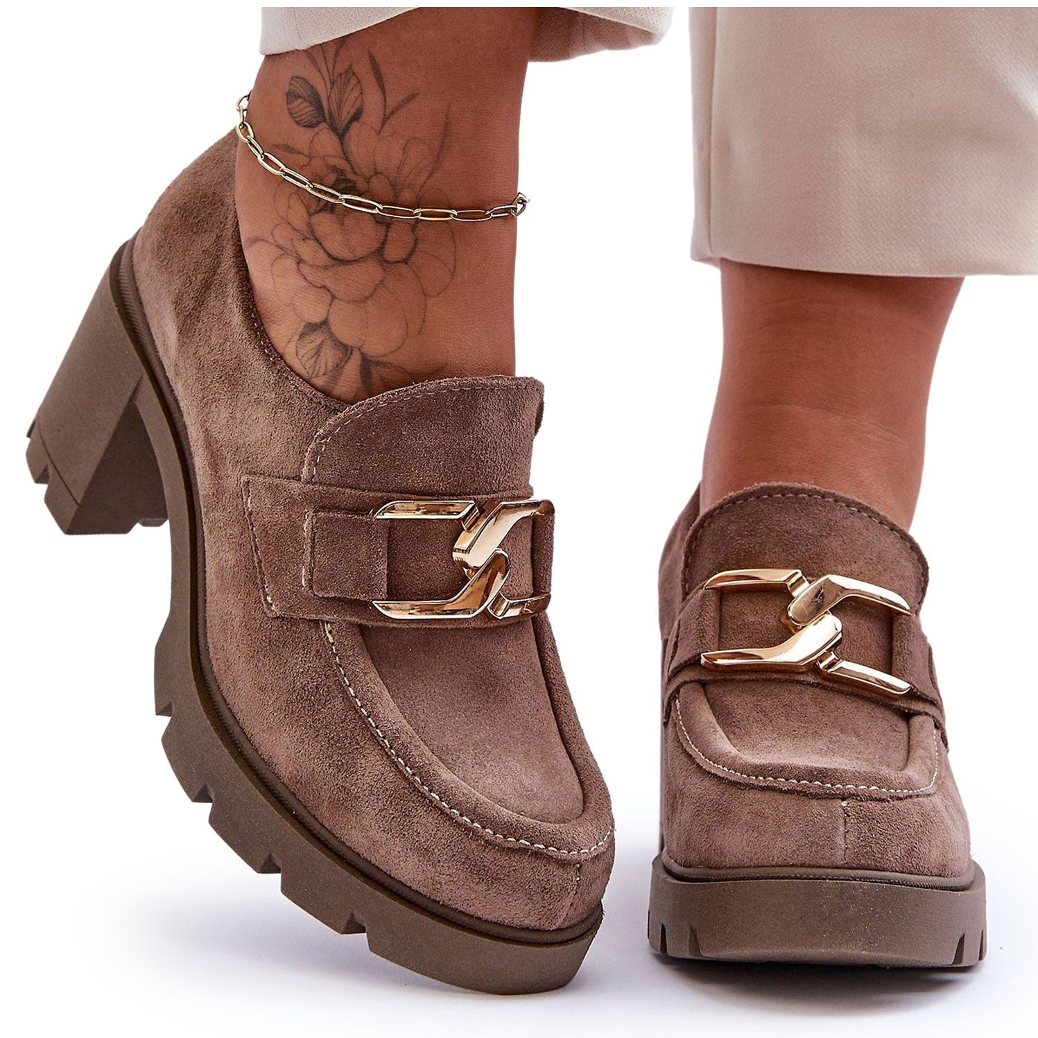 Vi presenterar eleganta högklackade skor från det välkända varumärket Lemar, som perfekt matchar vilken stil som helst. Dessa mörkbeige skor är gjorda av naturligt mockaläder av högsta kvalitet och kombinerar exceptionell stil och komfort.