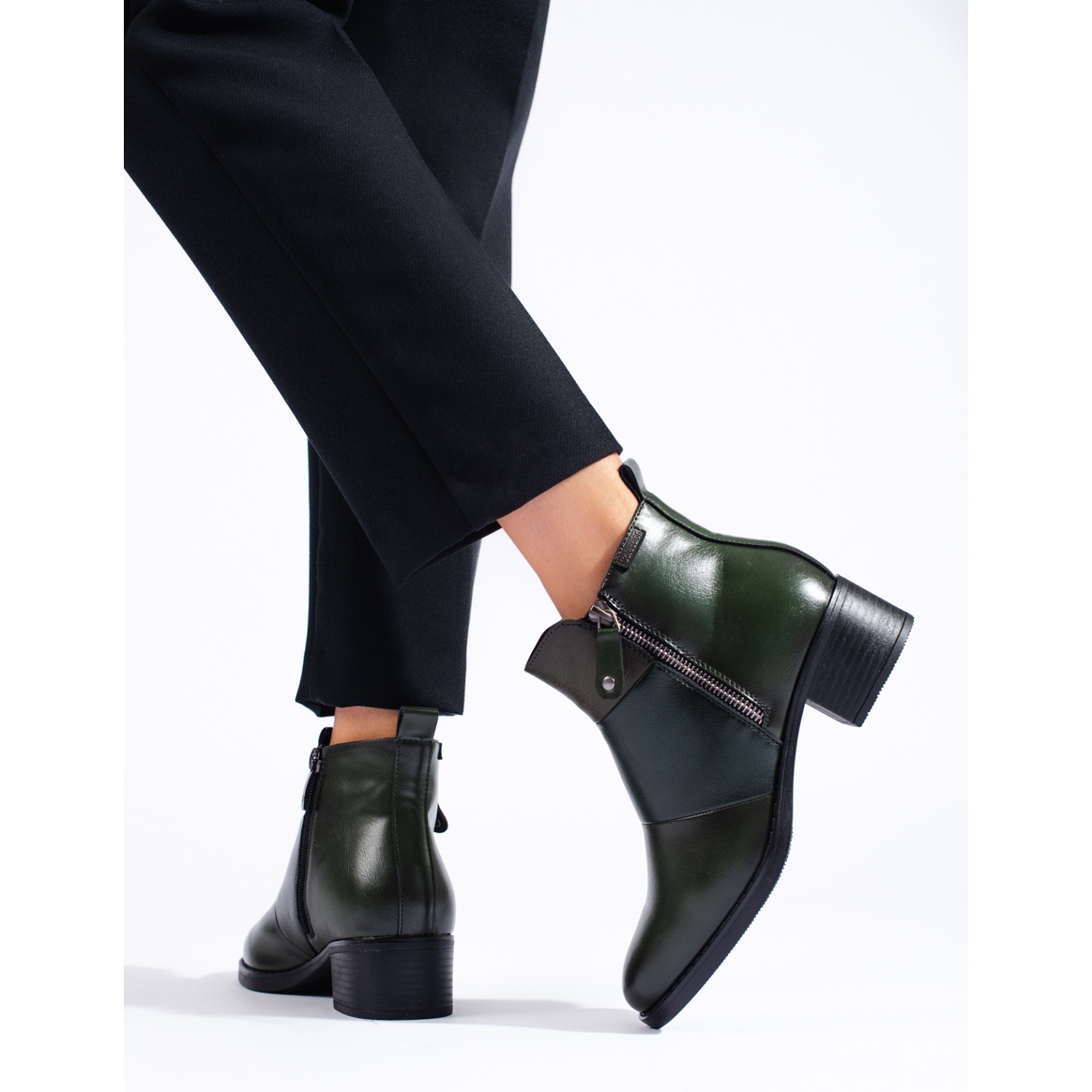 - Modell: Mörkgröna ankelstövlar för kvinnor