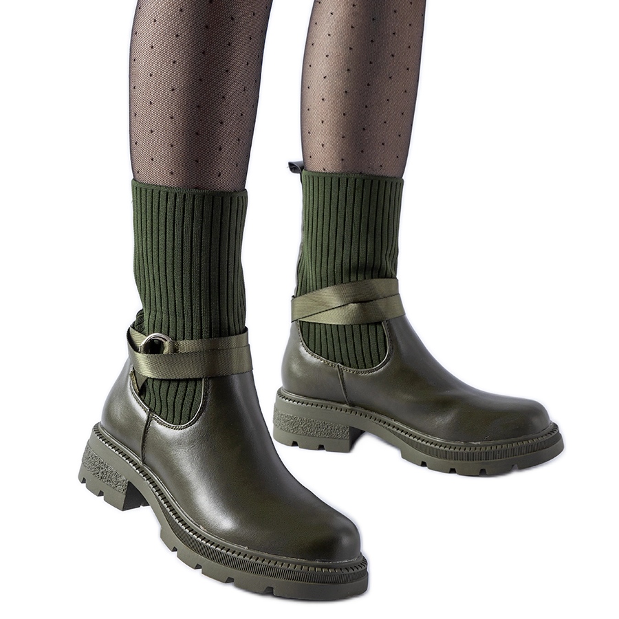 Mörkgrönt, plockarstrumpor är en kombination av modern, minimalistisk design med praktisk funktionalitet. Den insatta strukturen och den elastiska övre anpassningen anpassas perfekt till foten, och uppvärmningen ger värme och komfort under hösten -säsongen. En rund näsa och en platt häl gör att stövlarna är lämpliga både dagligen och för mer eleganta utgångar.