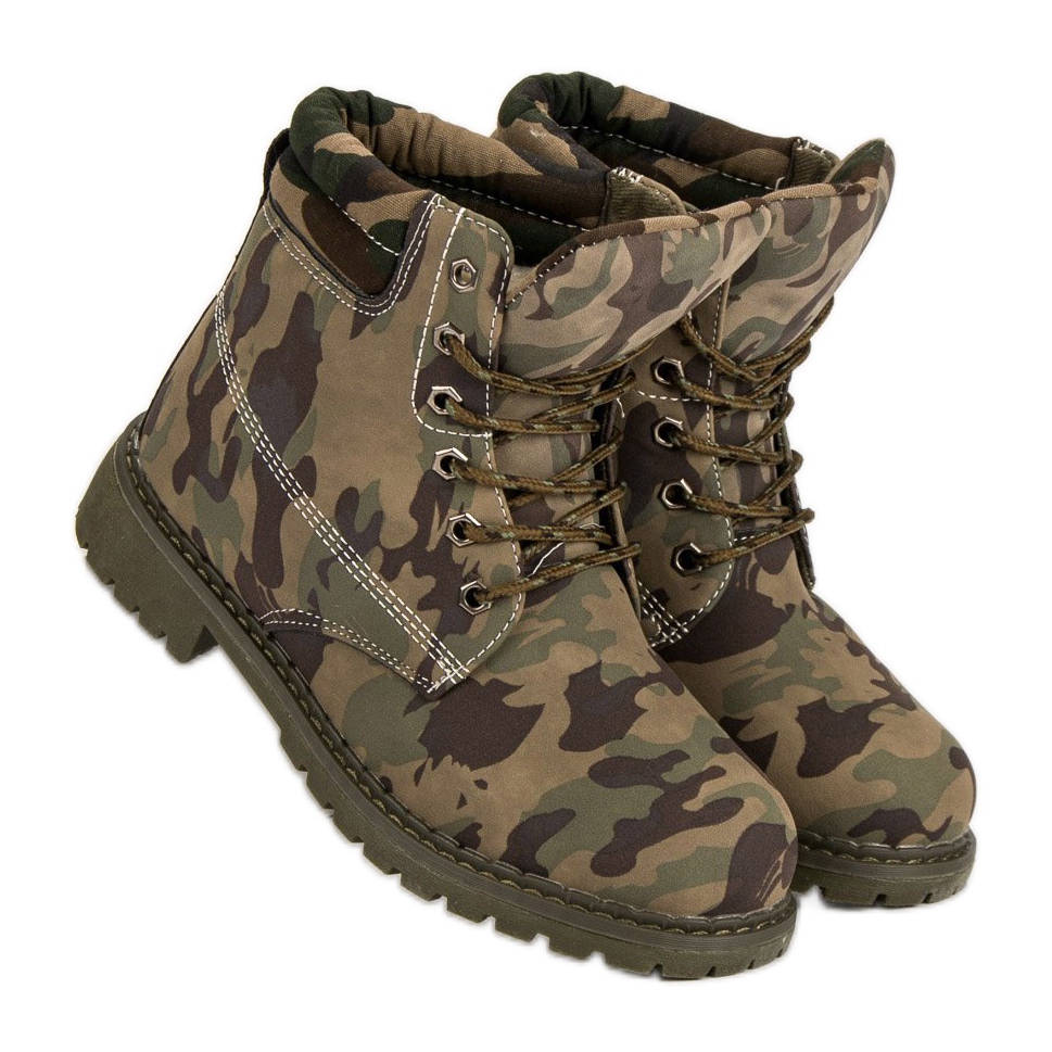 Tack vare spetsfästningen passar sneakersna perfekt till foten, vilket säkerställer stabilitet under gång. Ankelhöjden och isoleringen gör dem till ett idealiskt val för kallare dagar, vilket ger värme och komfort. Den gröna färgen med ett fashionabelt kamouflagemönster ger dem en unik karaktär, vilket gör att de matchar perfekt med många stilar - både avslappnade och mer sofistikerade.