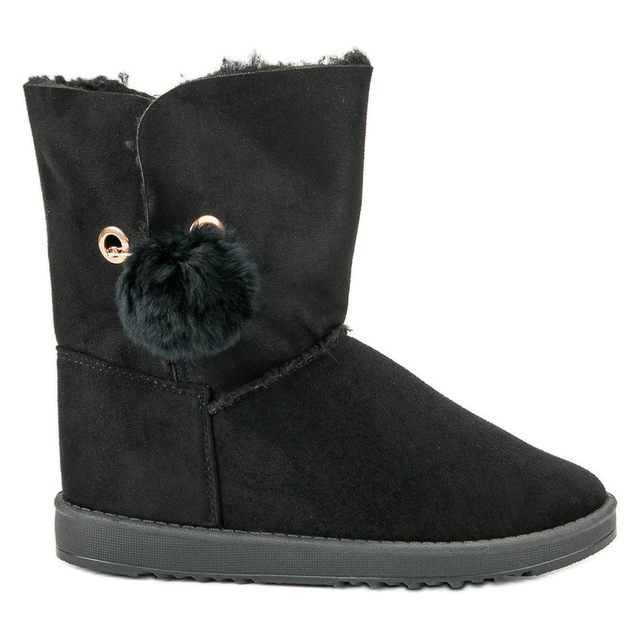 Insidan av skorna har noggrant isolerats med en behaglig fårskinnsrock, vilket gör dem till ett idealiskt val för kalla dagar. En ytterligare fördel är charmiga pompoms som ger det hela en subtil, avslappnad karaktär. Mukluks är slip-on, vilket gör dem lättare att ta på, och deras dämpade svarta färg gör att de matchar många stilar.