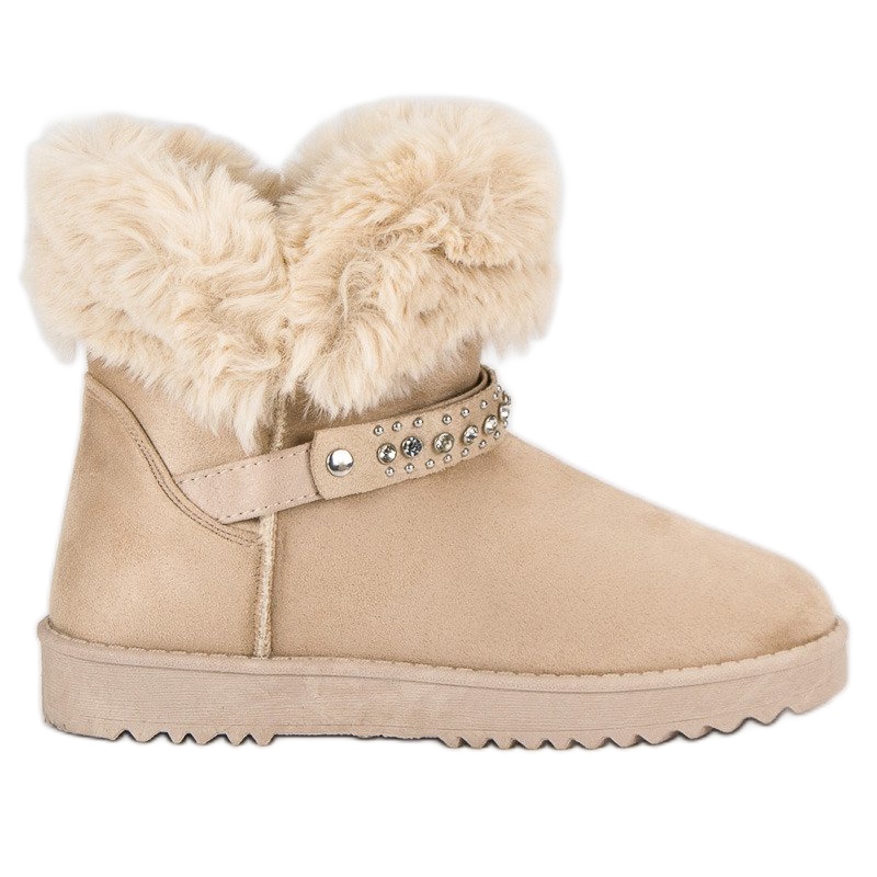 Mukluks kännetecknas av mjuk päls, som inte bara ger värme, utan också ger det hela en extremt behaglig look. Den subtila bruna nyansen gör att de passar perfekt med olika vinterstilar, och de dekorativa strassstenarna gör dem chica och moderna.