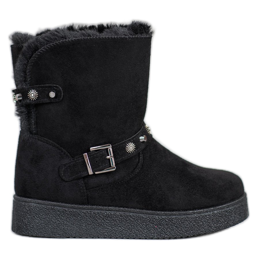 Den höga ovandelen av dessa skor skyddar inte bara perfekt mot ogynnsamma väderförhållanden, utan ger dem också en fashionabel karaktär. Dekorativa metallelement i form av strass gör mukluks chic, och deras avslappnade stil passar perfekt in i vardagliga, urbana trender.