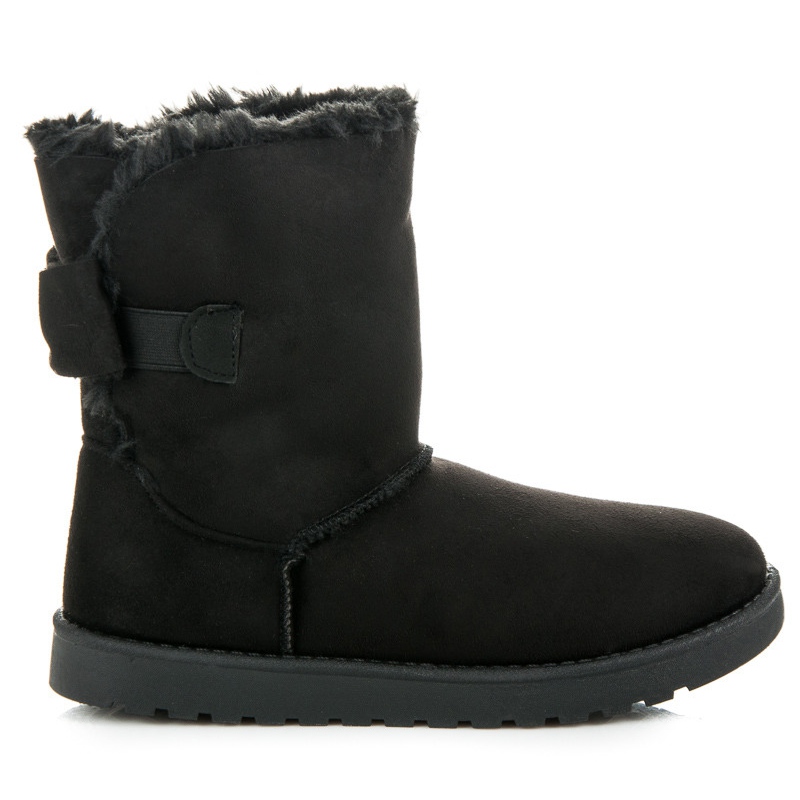 Mukluks i mocka med rosett i svart är den perfekta kombinationen av värme, komfort och stil för vinterdagar. Dessa höga snökängor kännetecknas av sitt eleganta utseende och universalitet, så att du enkelt kan matcha dem till många vinterstilar.