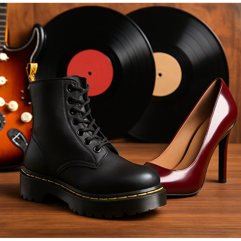 Varje musikgenre har utvecklat sin karakteristiska klädkod, där skor spelar en nyckelroll. Detta är ingen olycka - skor måste matcha musikens energi, fansens livsstil och estetiken för hela kulturströmmen.