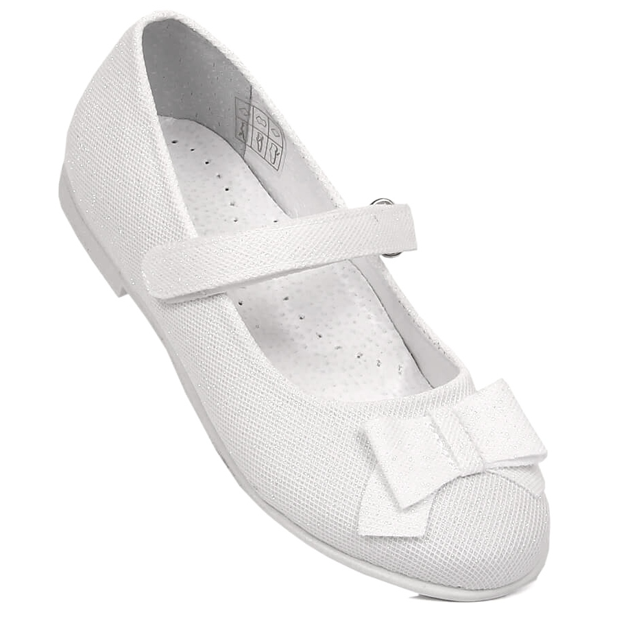 Kornecki Nattvardsballerinor för flickor glänsande vita med kardborre Kornecki 6802
