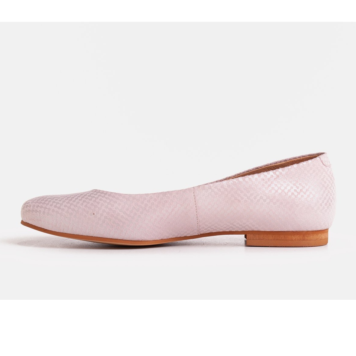 Det hela ser extremt smakfullt ut tack vare den högkvalitativa naturliga mocka som används för att avsluta den yttre delen av skon. Den känsliga rosa färgen i kombination med en silverpläterad nyans ger ballerinorna en modern karaktär och kan även göra dem till en attraktiv accent i alla stilar.