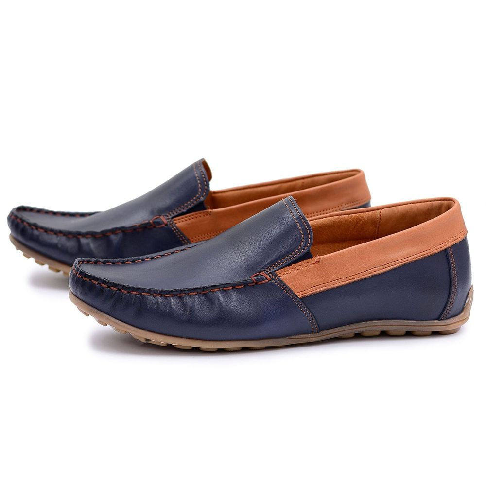 Information: Neex | Marinblå läder-förlåtelse-loafers för män