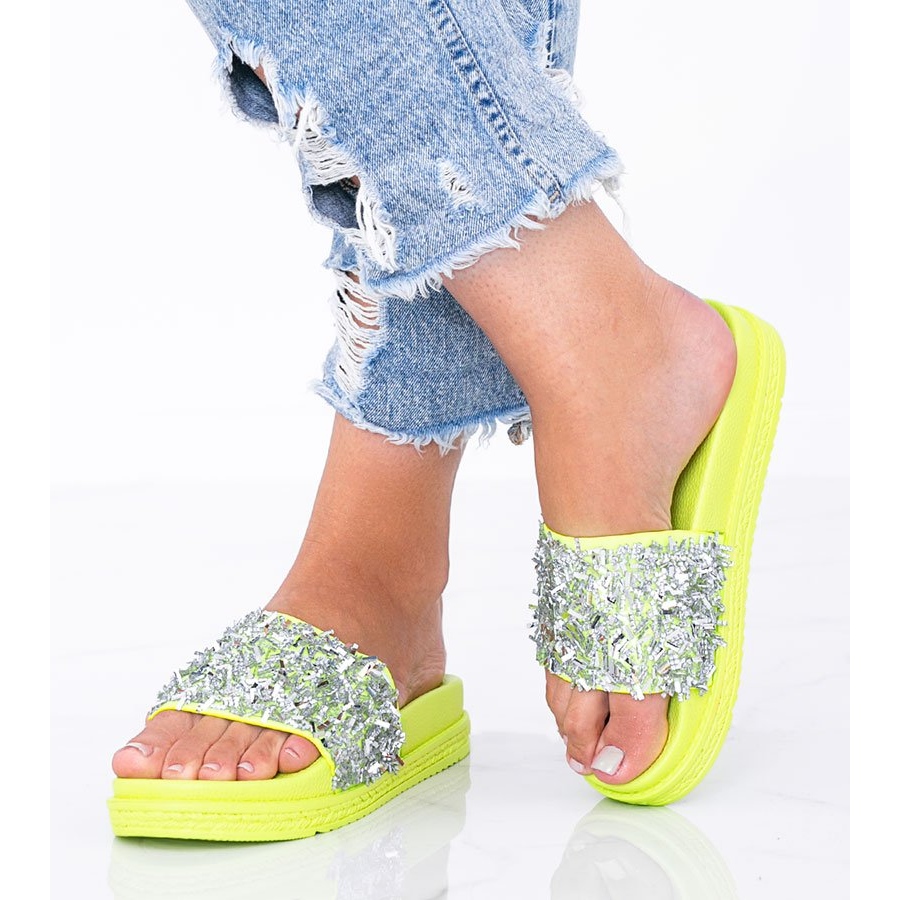 Inna marka Neongröna tofflor med cubic zirconia Love Bling