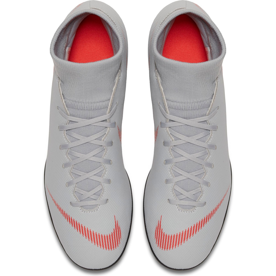 Nike Mercurial Superfly 6 Club MG är en modell skapad för att spela på naturliga och konstgjorda ytor. Den syntetiska, flexibla övre och den dynamiska passningskragen säkerställer att vissa "som en strumpa" passform, och en lätt sula med plasttrafikstockningar (MG) möjliggör snabb riktningsförändring och stabil acceleration. Modell från den höjda på betongsamling, i en mångfärgad version (grå med röda accenter).