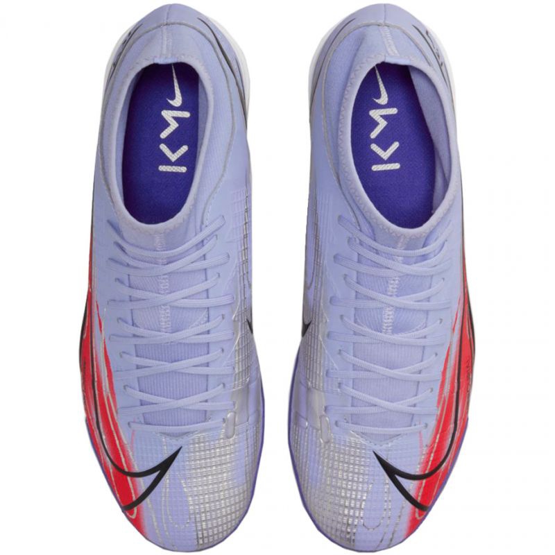 Vi presenterar Nike Mercurial Superfly 8 Academy TF KM DB2868 506 fotbollsskor, som är ett utmärkt val för alla som vill sticka ut på planen tack vare sin kreativitet och smidighet. Dessa gräsmattor, signerade med namnet på den talangfulla fotbollsspelaren Kylian Mbappe, kommer från den exklusiva Mbappe Flames Pack-kollektionen, som ytterligare understryker deras unika karaktär.