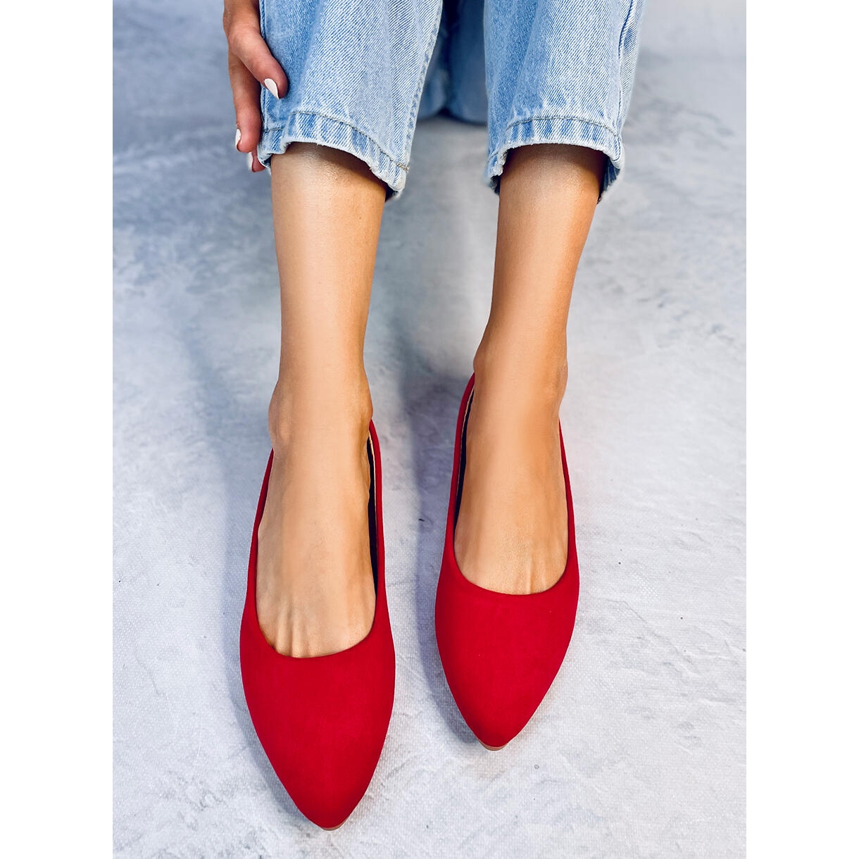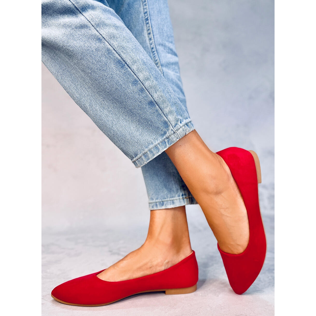 Exceptionell användningskomfort säkerställs av den inre läderinsatsen, som garanterar komfort vid varje steg, och den platta hälen säkerställer stabilitet och låter dig röra dig fritt hela dagen. Balettlägenheterna är gjorda av ekologisk mocka, vilket gör dem estetiska och miljövänliga, och deras vackra röda färg är iögonfallande och ger karaktär till varje styling.