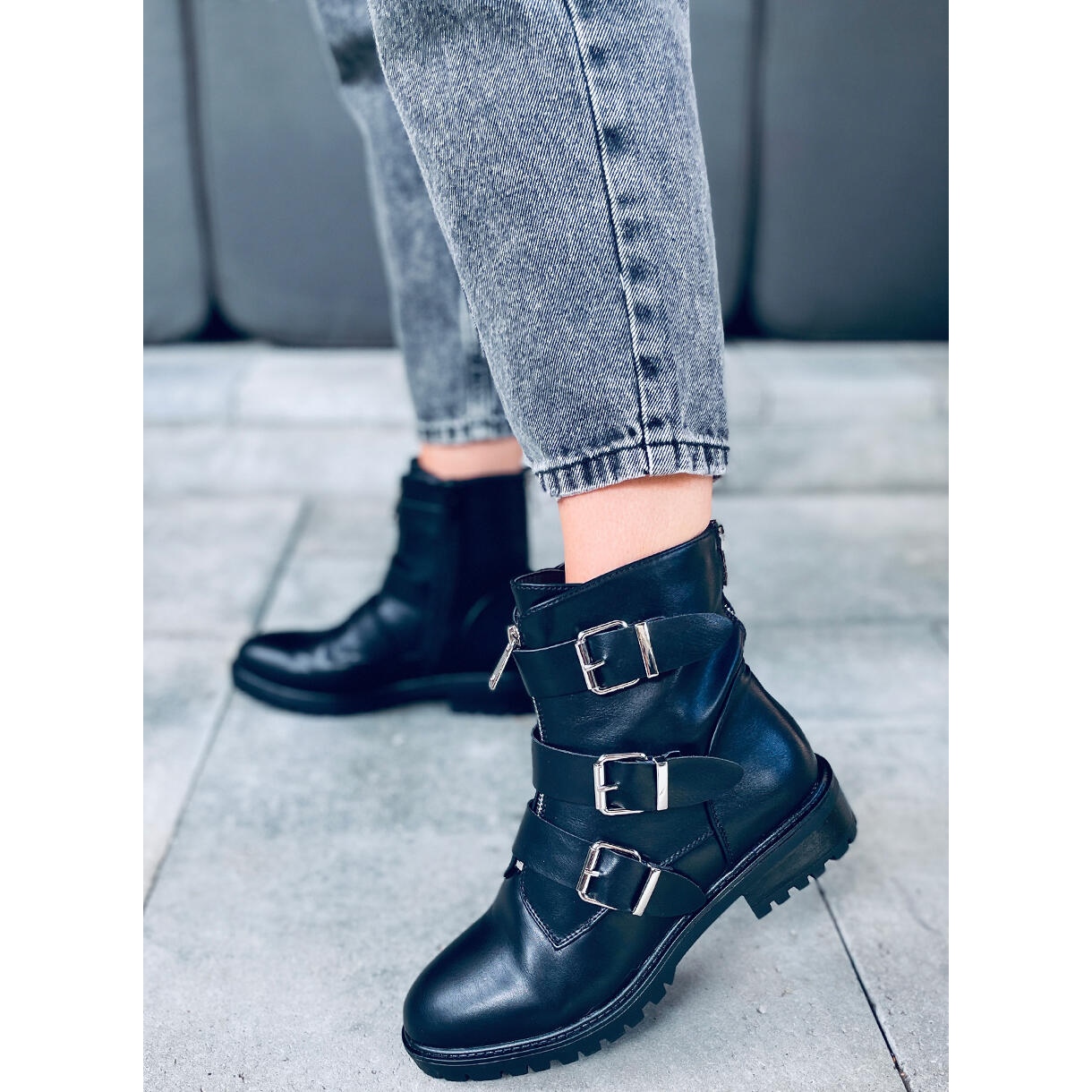 Oklahoma Black är en modell med platt klack vars höjd endast är 3,5 cm, vilket gör dem extremt bekväma även när de bärs under långa perioder. Ankelhöjden ger stabilitet och betonar den militära karaktären hos dessa skor.