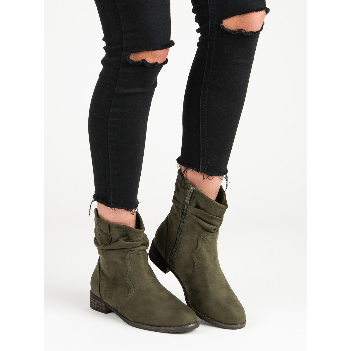 Lär känna de olivfärgade Nio Nio ankelboots som perfekt kommer att komplettera din höst- och vinterstyling! Dessa eleganta ankelstövlar för kvinnor, gjorda av ekologisk mocka i subtilt grönt, är det perfekta valet för varje fashionabel kvinna.