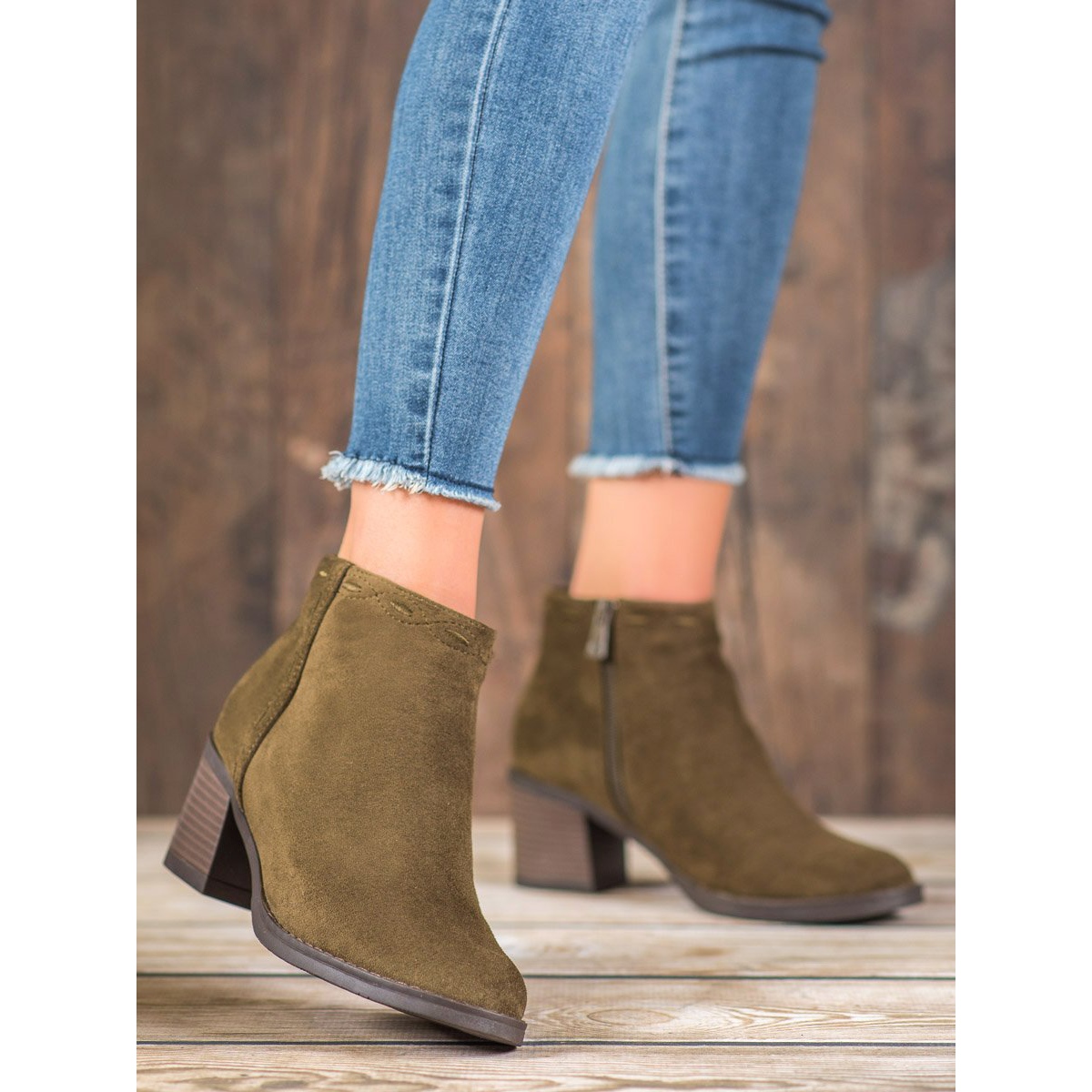 Detaljer: Kylie Olive Booties på ett inlägg grön