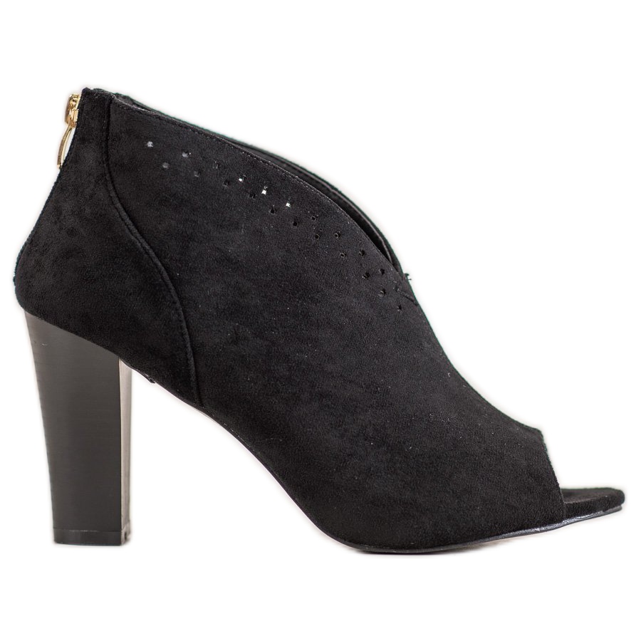 VINCEZA ankelboots med öppen tå i svart är det perfekta valet för kvinnor som vill kombinera elegans med en modern stil. Tillverkade av högkvalitativt ekologiskt mockaläder, ger dessa ankelstövlar inte bara ett attraktivt utseende, utan också komfort att bära. Den ursprungliga designen med öppen tå ger varje styling en unik karaktär.