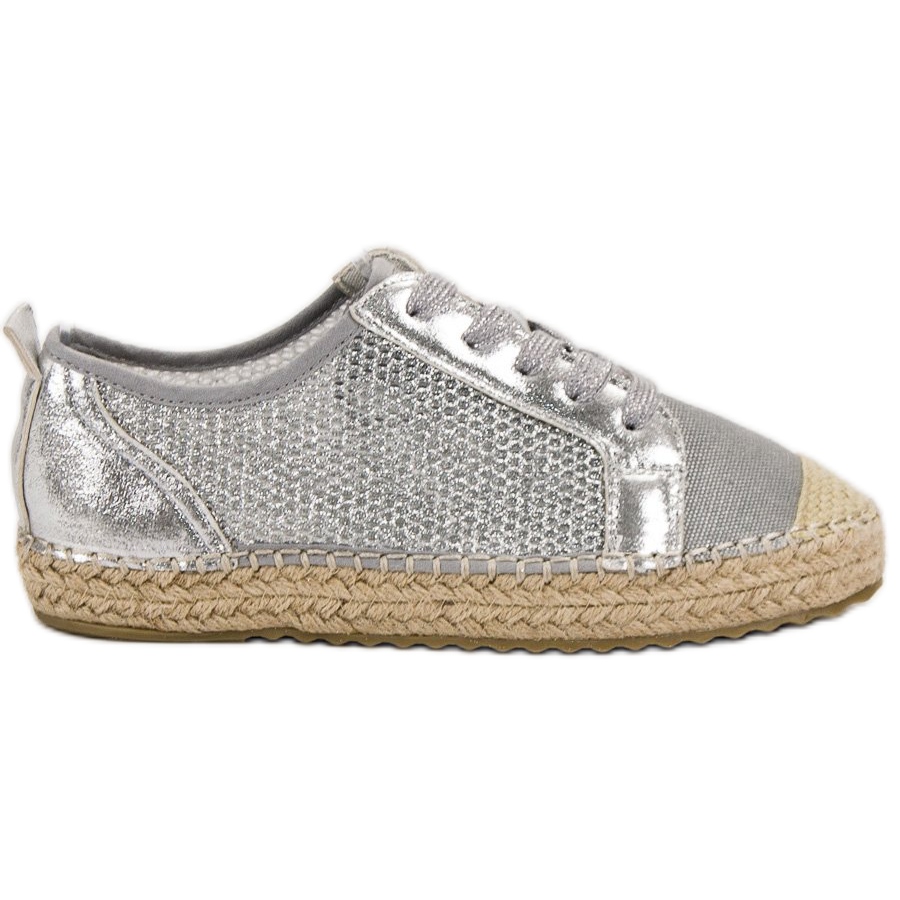 Espadrillor är gjorda av högkvalitativt tyg i nyanser av silver, vilket gör dem till ett mångsidigt garderobsplagg. Kontrasterande tår och sulor, trimmade med flätat snöre, ger dem en unik karaktär. Denna modell passar perfekt till både vardagliga och sportiga stilar.