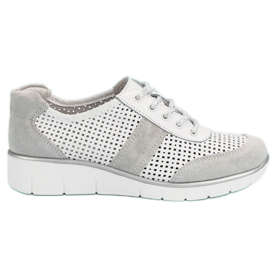 Det här är Filippo Openwork Läderskor i vitt, som är ett perfekt val för varje kvinna som vill kombinera komfort med elegans. Dessa unika skor kännetecknas av genombrutna insatser som ger dem subtilitet, men som samtidigt lockar uppmärksamhet med sin uttrycksfullhet. Klassiskt vitt kombinerat med grått är en kombination som fungerar perfekt med vilken styling som helst.