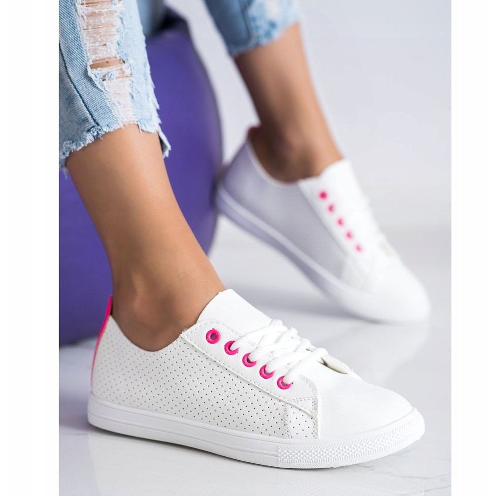 Vi presenterar genombrutna vita sneakers i ekoläder från märket SHELOVET, som passar perfekt in i vårens och sommarens trender. Dessa snygga damskor är ett bra vardagsval, som kombinerar avslappnad och sportig stil.