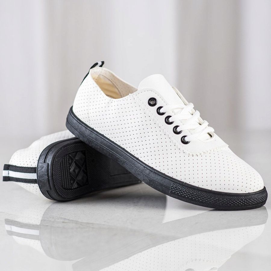 Vi presenterar genombrutna sneakers på en svart plattform från märket SHELOVET, som är en perfekt kombination av modern design och komfort att bära. Dessa vita sneakers är gjorda av högkvalitativt läderimitation och är perfekta för dagligt bruk och ger fräschör till varje styling.