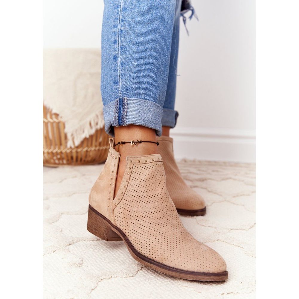 Information: PS1 Openwork stövlar med utskärningar Beige Clever brun