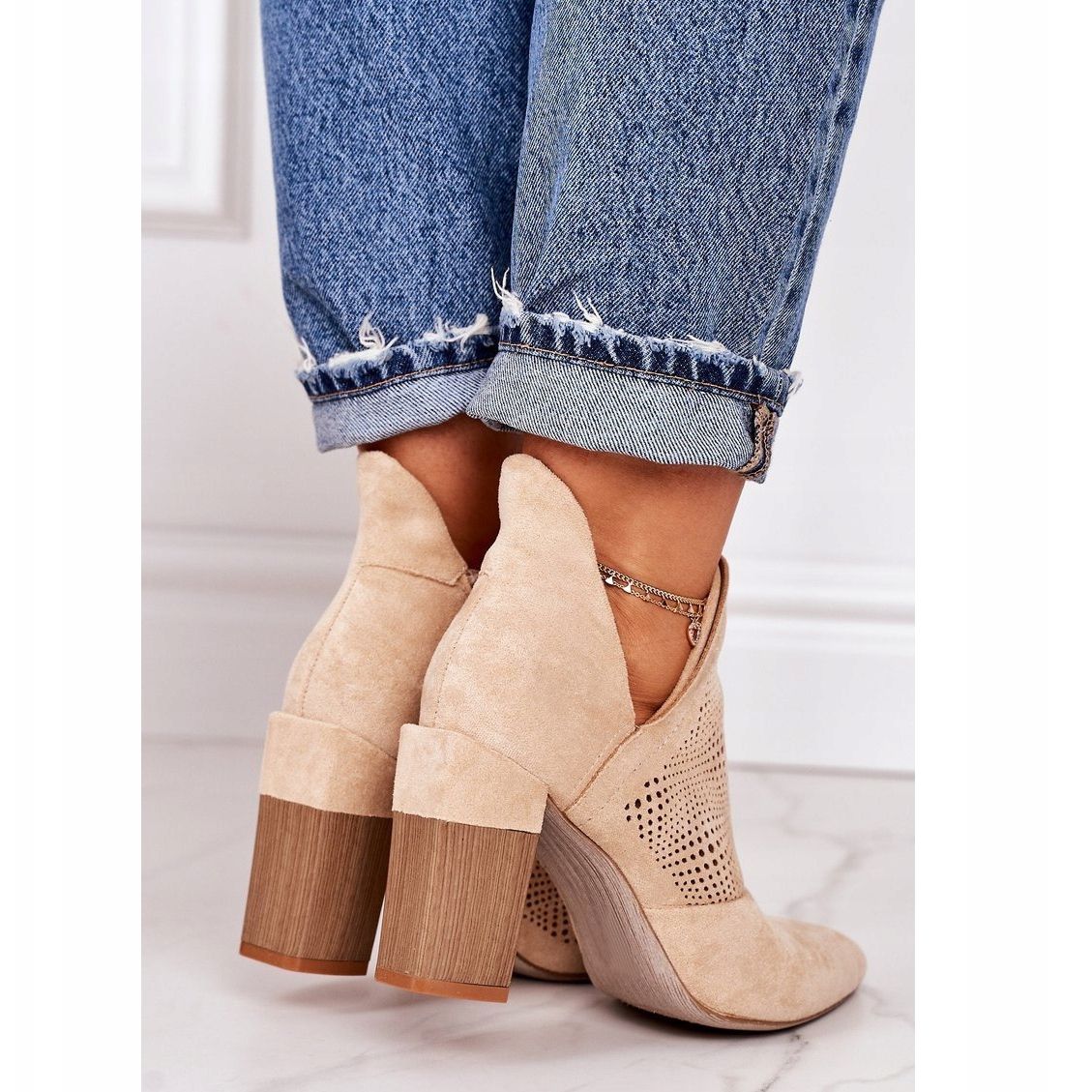 Det här är de perfekta stövlarna för våren - Michelles genombrutna ankelboots i beige. Dessa snygga skor är gjorda av ekomocka och kombinerar elegans med komfort. Den mjuka innersulan garanterar komfort att bära hela dagen, och den stabila 9 cm höga stolpen ger extraordinär charm till varje styling.
