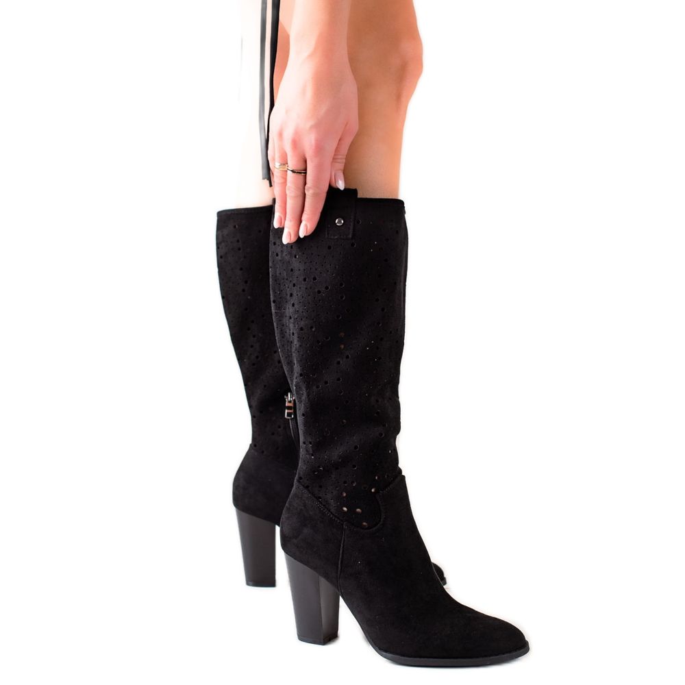 TRENDI TRENDI Openwork stövlar på en stolpe svart