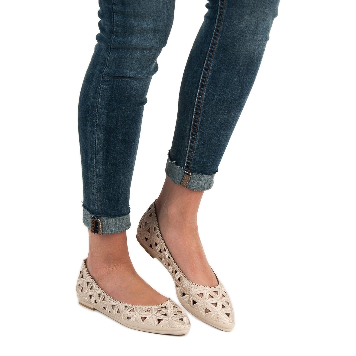 VICES genombrutna ballerinaskor i beige är ett perfekt val för varje kvinna som vill kombinera komfort med elegans. Dessa snygga skor kännetecknas av ett subtilt, genombrutet mönster som tillför lätthet och extraordinär charm till dem. Tack vare sin känsliga, glänsande finish passar dessa balettlägenheter perfekt med vardagliga, avslappnade stilar och ger dem en lite flickaktig karaktär.