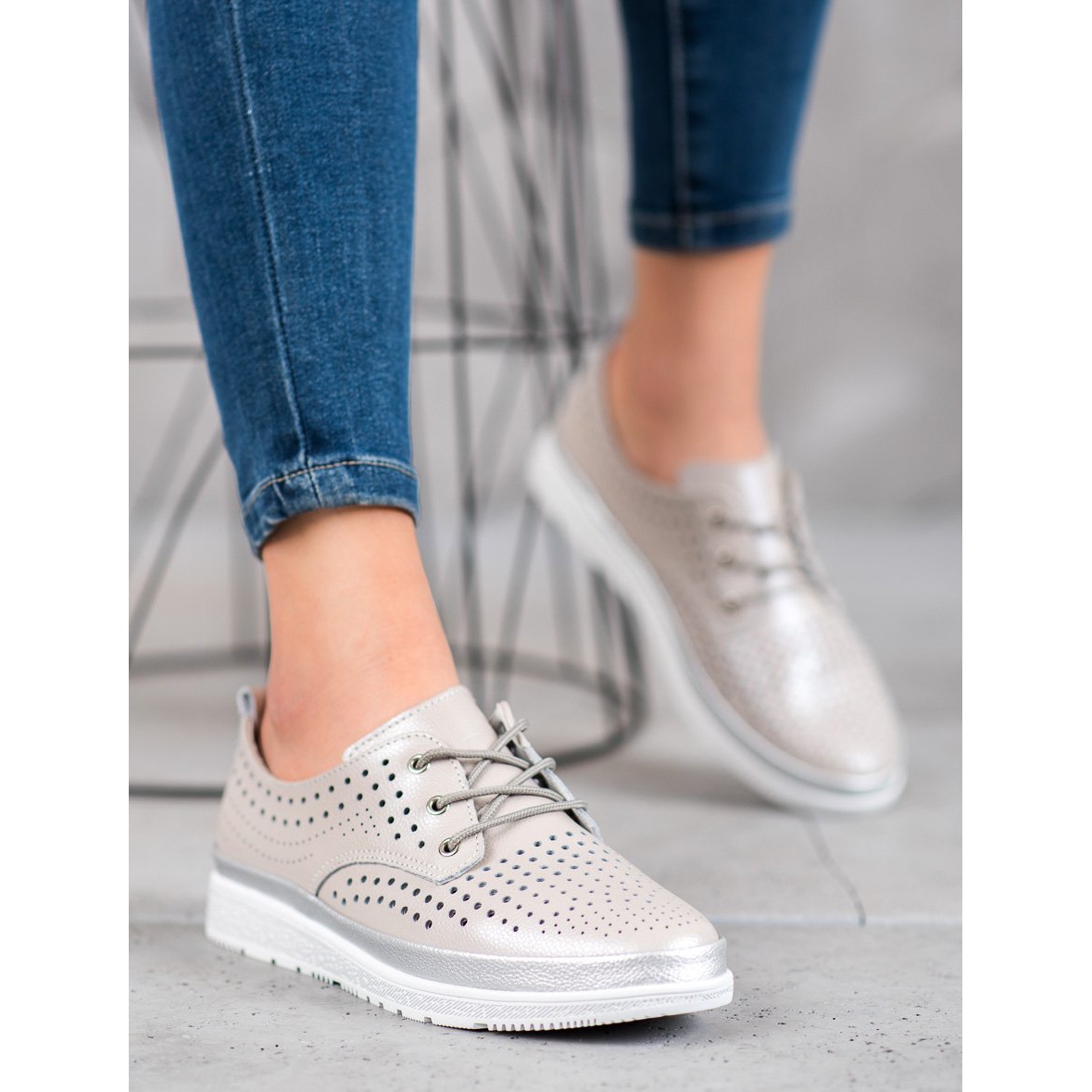 Upptäck elegans och komfort med genombrutna Filippo-skor! Tillverkade av högkvalitativt naturligt läder, dessa snygga skor finns i harmoniska nyanser av brunt och grått, perfekt matchande vår- och sommarstilar. Den unika designen och noggrant genomtänkta detaljer, som snörning och det vita slitbanan, gör dem inte bara till ett moderiktigt val, utan också till en bekväm följeslagare i vardagsaktiviteter.