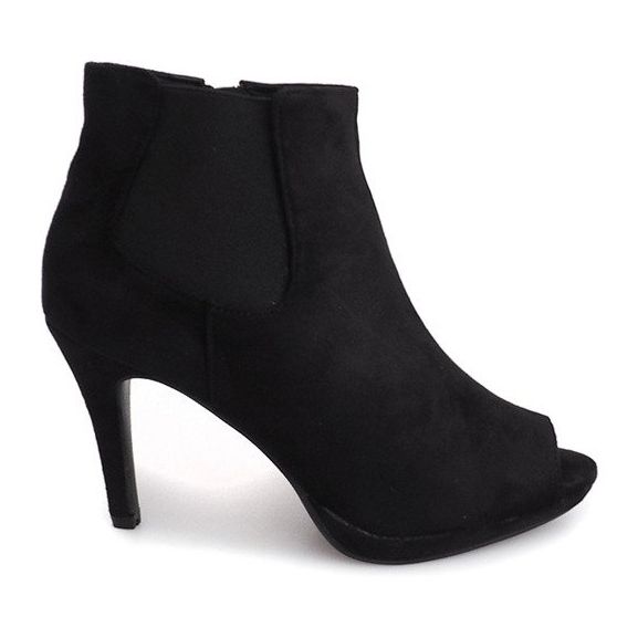 Svarta ankelboots med öppen tå är extremt universella - de matchar både avslappnade och mer eleganta outfits. Dragkedjan gör den lätt att ta på, och komforten att bära säkerställs av en syntetisk sula och en innersula av ett annat material. En intressant accent är avsaknaden av en näsa, vilket ger dem lätthet.