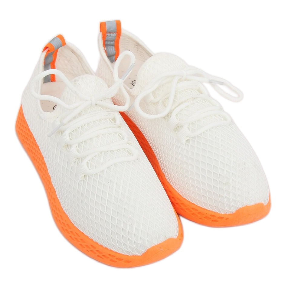 Deras släta mönster och ursprungliga kombination av vitt med en levande nyans av orange gör dem inte bara praktiska utan också moderiktiga. Snörningen och slip-on stängningen gör den lätt att ta på och anpassa efter foten, vilket gör dem till ett mycket universellt val.
