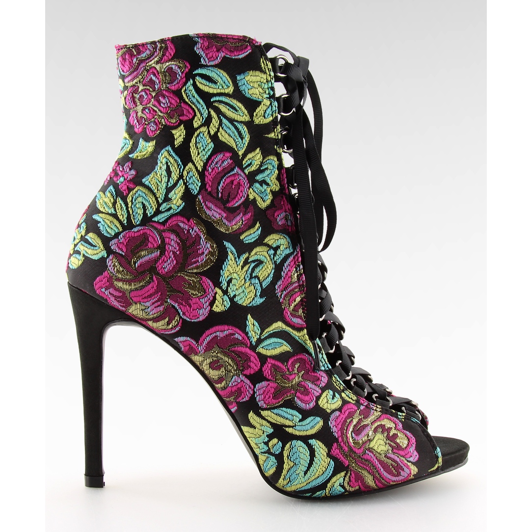 Upptäck extraordinära SVART/FUSHIA orientaliska ankelboots med snörning som säkert kommer att dra till sig uppmärksamhet! Dessa vackra skor med öppen tå med en snygg 10,5 cm hög klack är det perfekta valet för varje kvinna som vill lägga till en unik karaktär till sin styling.