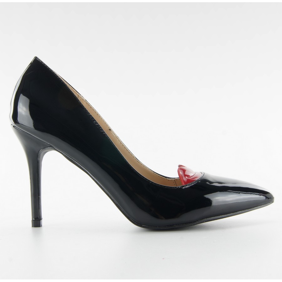 Original Black pumps med läppmotiv - en feminin accessoar som väcker uppmärksamhet. Den lackade ovandelen i klassisk svart kompletteras med en distinkt accent i form av röda läppar på tån, vilket ger skorna en originell, moderiktig karaktär. En 9,5 cm hög stilett gör figuren optiskt smalare samtidigt som den behåller en elegant kvällsstil.