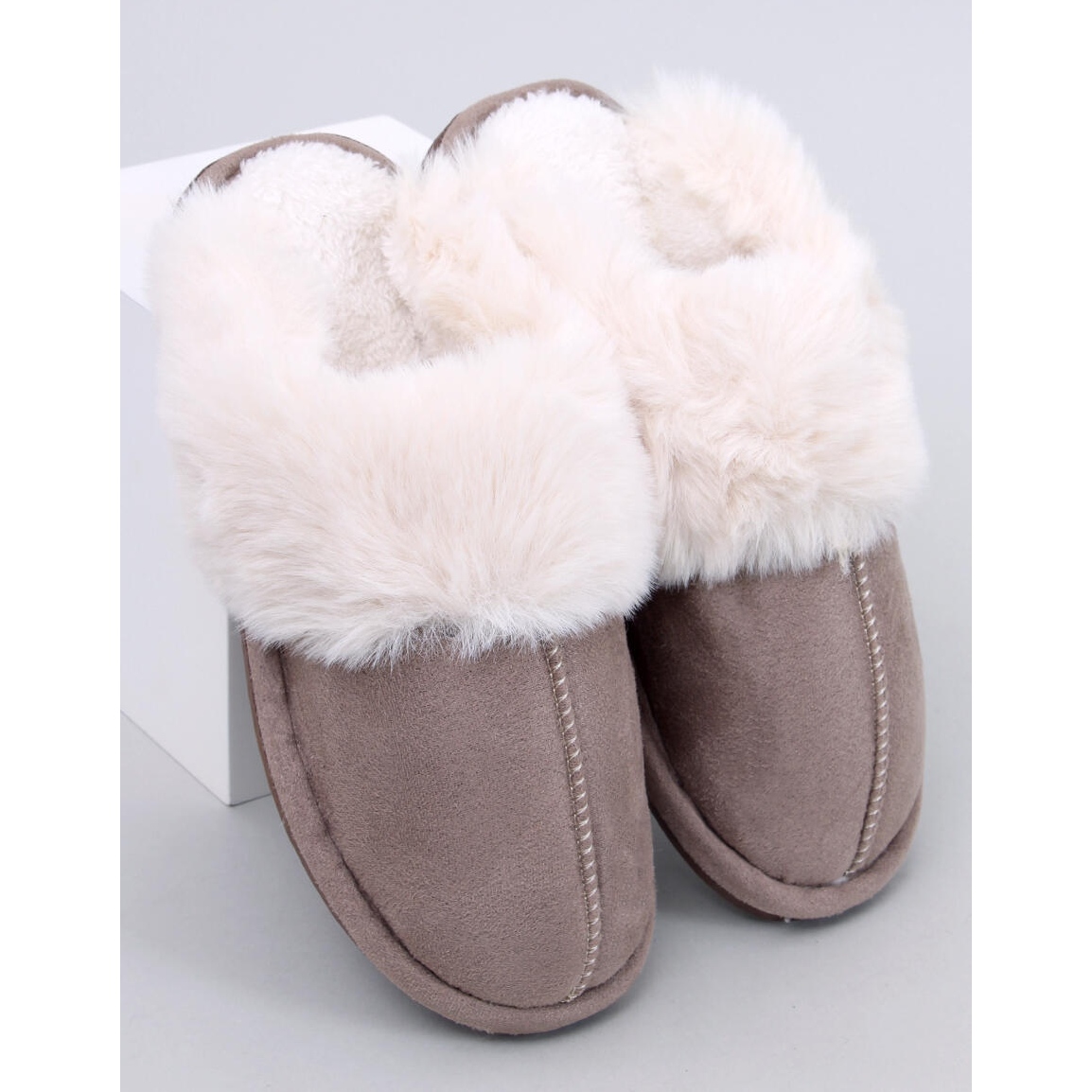 Snygga och extremt mysiga tofflor Otteys Mocca är det perfekta valet för svalare dagar. Det yttre skiktet av ekologisk mocka i en elegant nyans av Mocca går fint med en mjuk, dekorativ päls, vilket ger kvinnors charm till tofflorna och ger ytterligare uppvärmning. Slidda struktur och platt häl (ca 2 cm) garanterar bekvämlighet vid användning hemma, och den syntetiska sulan ger stabilitet och hållbarhet.