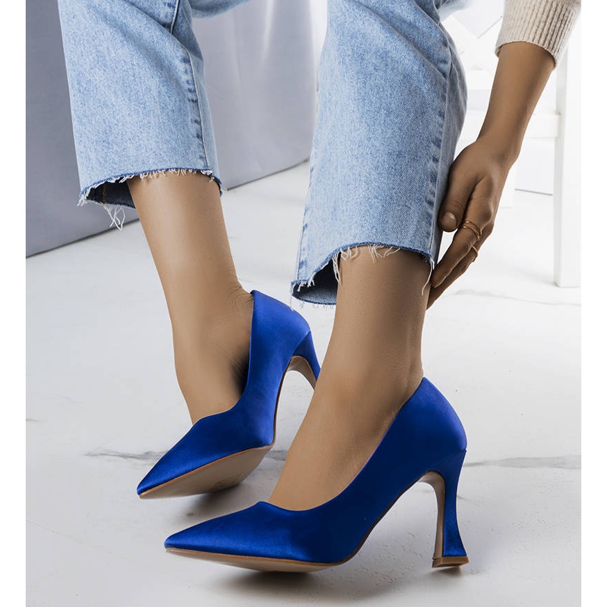 De höga klackarna är gjorda av högkvalitativ satin och ser extremt lyxiga ut. Den smala, spetsiga tån ger klass, och den belagda 8 cm hälen gör att varje kvinna känner sig självsäker och feminin. Tack vare det ekologiska läderinlägget är bärkomfort i kombination med elegans deras otvivelaktiga fördelar.