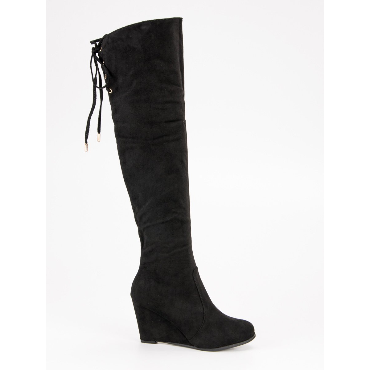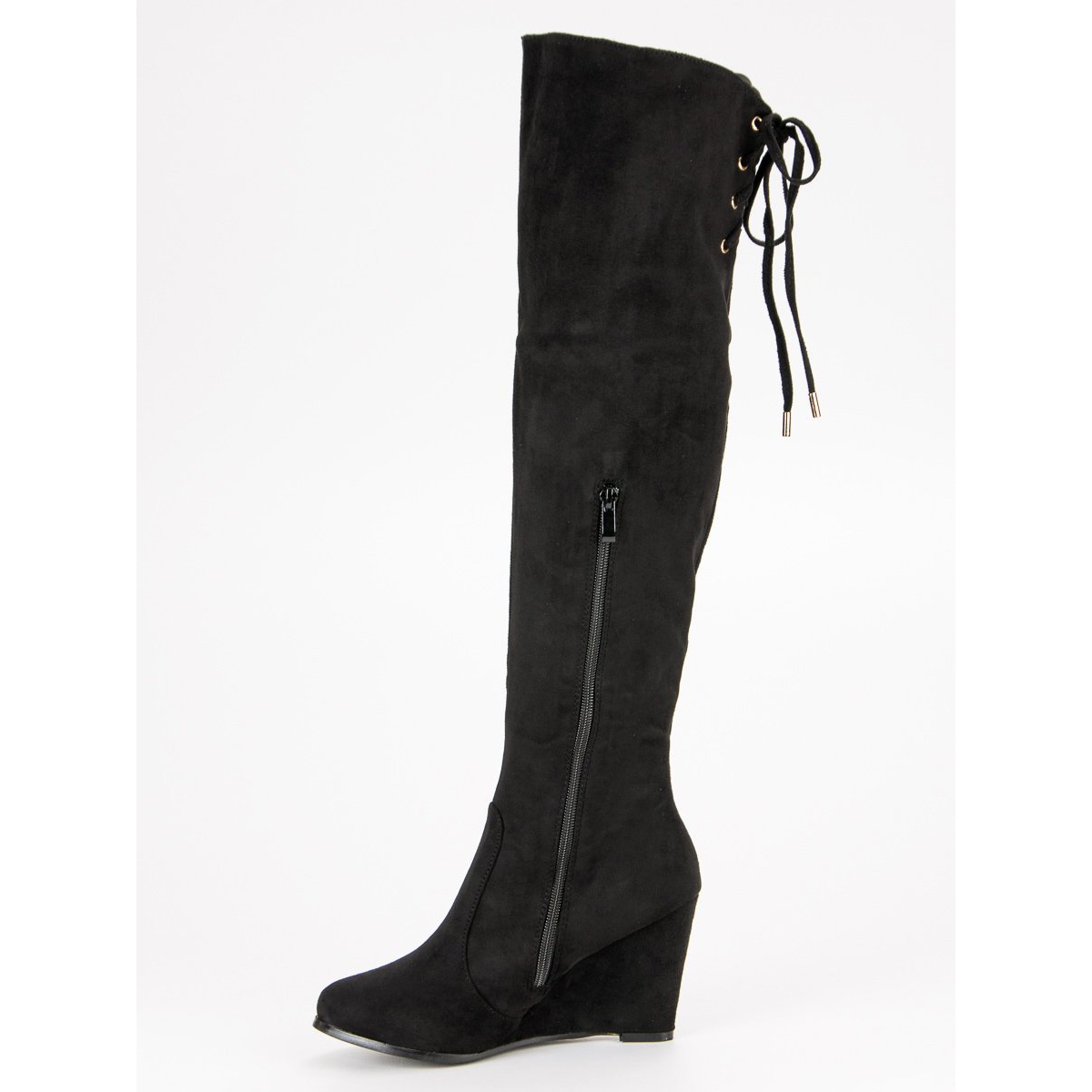 Tack vare den långa ovandelen som sträcker sig över knäet förlänger dessa musketörer benen vackert, och kilarna på 8,5 centimeter ger tillräcklig stabilitet och komfort när de bär, är en utmärkt lösning för kvinnor som föredrar att undvika traditionella klackar.