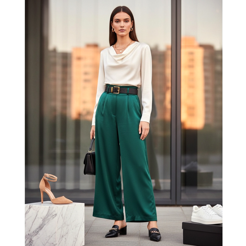 Palazzo byxor är synonymt med komfort och elegans i ett. Dessa vida, luftiga byxor med hög midja är extremt moderiktiga och universella. Undrar du vilka skor som passar dem? Vi visar dig hur du skapar en bländande stil för olika tillfällen.